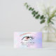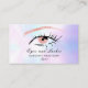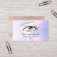 Um cartão de visita chic e elegante com uma bela ilustração de um olho e cílios em um fundo de pérola iridescente. O verso apresenta detalhes de contato adicionais em um fundo dourado rosa com brilho. Criado por Thisisnotme©