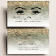 This glamorous modern business card features a sketch of two eyes with elegantly arched eyebrows in black on a background image of olive green marble. A sprinkling of gold faux glitter decorates the top edge of the card. Personalize it with your name in black handwriting-style script and title and contact information in black sans serif font.