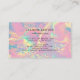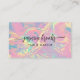 Destaque-se com este cartão de visita elegante que apresenta um fundo iridescente inspirado em opala, acentuado por brilho dourado cintilante. Tons vibrantes de rosa, lavanda, verde menta e laranja suave criam um design moderno e feminino, perfeito para profissionais de beleza, cabeleireiros e artistas de maquiagem. Este visual luxuoso é ideal para empreendedores criativos que buscam uma maneira sofisticada e profissional de exibir sua marca. Destaque seu estilo único com este deslumbrante e sofisticado design de cartão.
