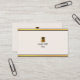 Listras modernas e ouros sobre Cartões de visitas bege. Todos os textos e logotipos prontos para serem personalizados.