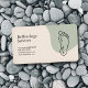 A professional business card for a reflexology practice featuring clean typography and calming earth tones. It comes with a subtle illustration of a foot outline with pressure point markings, rendered in natural color palette of muted greens and warm beiges. A great option for reflexologist, or any wellness activities such as massage, foot care, acupuncture, shiatsu, pedicure, podiatrist, acupressure.