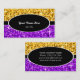 O modelo de cartão de negócios com um design moderno que caracteriza as estrelas dispersadas sobre do "um fundo estilizado do olhar sequin" nas máscaras do ouro amarelo e o roxo com um oval e uma listra pretos afiou com texto branco e branco. O texto pode facilmente ser mudado usando o modelo fornecido ou para clicar "personalizam-no" botão para fazer umas alterações mais adicionais. Note por favor isto é uma imagem digital impressa da arte, não brilha nem não contem o brilho real ou os sequins.