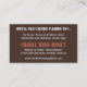 Está aqui um cartão de visita atraente para o ovo produzindo fazendeiros da galinha! Laranja oxidada vívida um Rhode colorido - o ponto vermelho da herança da ilha da galinha colocada, com o bico untrimmed afiado como pássaros for mantido geralmente quando em um tipo ajuste espaçoso, ar livre, da família da fazenda e não em um eggery comercial abarrotado. A rotulação colorida vermelho rica do estilo da caixa do estêncil do marrom e do orangey anuncia que você tem ovos ar livre orgânicos frescos, e o verso tem os campos numerosos do texto para você personalizar com sua própria informação pessoal e do negócio. Este é o cartão de visita feito sob medida padrão. Os outros tamanhos e design disponíveis na loja. www.zazzle.com/countrycorner