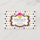 design 2010 da socialite do ©. Design colorido do cupcake, com área de texto da bandeira da nuvem e fundo das bolinhas, cartão de visita da padaria pronto para que você personalize para seu negócio. O estilo de pia batismal pode ser mudado. AJUDA da necessidade com personalização? Por favor não hesite contactar-me.