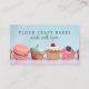 Uma indústria de pastelaria, de padaria ou de restauração de sobremesa, de inspiração francesa, moderna e única, que inclui uma fila de sobremesas com foscos e cupcakes salpicados, macarões, muffin e tarte. Um cartão de visita de panquecas de estilo caprichoso. Pinks, blues, glacé, aspersores.