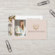 Eleve a marca da sua padaria caseira com nosso Modelo de Cartão de Visita de Confeiteira Caseira de Luxo Elegante da ©Moodthology Papery. Este design chique e sofisticado apresenta um layout limpo e sofisticado com um brasão floral dourado vintage desenhado à mão na frente, perfeito para exibir seu monograma acima do nome da sua empresa. Adicione sua foto para personalizar o cartão e causar uma primeira impressão memorável. O verso permite que você exiba duas fotos adicionais, um código QR e suas informações de contato e redes sociais, facilitando que os clientes se conectem com você online. Ideal para confeiteiras caseiras, empresas de padaria, serviços de catering e chefs de pastelaria, este modelo personalizável combina elegância e funcionalidade, ajudando sua marca a se destacar.