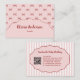 Cartão de visita com padrão de arco rosa vermelho inspirado em vintage criado para marcas bonitas, femininas e delicadas. Ideal para boutiques de roupas de bebê artesanais, artistas de maquiagem e proprietários de pequenas empresas. Inclui posicionamento de código QR elegante para networking moderno e branding profissional atraente.