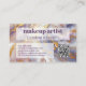 Se você é um consultor de beleza, um estético, um estilista de cabelos e unhas, ou um artista de maquiagem, você precisa de um cartão de visita que reflita sua paixão e seu conhecimento. Este cartão de visita espetacular apresenta um padrão de arte de onda azul, roxo, rosa escuro, branco e dourado que irá chamar a atenção de seus clientes potenciais. O design marmoreado simboliza sua criatividade, elegância e sofisticação, enquanto os sotaques do ouro acrescentam um toque de luxo e glamour. Clique em 'Personalizar' para encontrar o modelo pronto para ser personalizado com seu nome comercial, profissão, informações de contato, texto e código QR exclusivo de sua escolha. Esta design única e bonito foi feita para aqueles que gostam de sofisticados desenhos geométricos abstratos clássicos. Peça o seu hoje e impressione seus clientes com seu estilo e profissionalismo exclusivos.