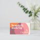 Belo cartão de visita de maquiagem artística. Com a luz escura contemporânea cor-de-rosa, madrugada esticada, esticada, escrita em círculos redondos cor de laranja tangerina sobre um fundo esbranquiçado de marfim combinado com uma fonte moderna minimalista. Clique em 'Personalizar' para encontrar o modelo pronto para ser personalizado com seu nome comercial, profissão e informações de contato, texto e código QR exclusivos de sua escolha. Este design único e bonito foi feito para aqueles que gostam de pastéis coloridos brilhantes e sofisticados desenhos geométricos abstratos clássicos sofisticados.