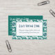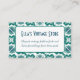 Eleve seu negócio com esses cartões de visita inspirados no vintage. Com um padrão verde escuro elegante no estilo de azulejos cerâmicos vitorianos, os cartões sofisticados farão a nota certa para uma primeira impressão memorável. Quer você administre uma butique de roupas vintage, uma loja de antiguidades ou simplesmente goste do visual nostálgico, os cartões podem ser personalizados com seus próprios detalhes para fazer a introdução perfeita. A frente do cartão inclui o nome da sua empresa e slogan em tipografia retrô, enquanto a parte de trás inclui espaço para seu endereço, número(s) de telefone e site. Há também um código QR escaneável, pronto para você linkar ao seu site. Clique em 'Personalizar' para continuar e insira sua mensagem no modelo.