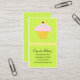 O belo cartão de visita cupcake amarelo verde limão é ideal para padarias, padeiros e padeiros artesãos. O cartão de visita de padaria vertical cupcake mostra cupcakes deliciosos com um belo fundo verde limão e silhuetas amarelas cupcakes formando um padrão. Personalize este cartão de visita e faça dele hoje mesmo.