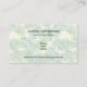 Cartões de visitas profissionais modernos com padrão verde de folhas tropicais e uma moldura branca com borda dourada colocada sobre cima. Uma ilustração rosada com flamingo adiciona um toque de chorona.