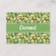 Cartão de visita de Padrão de Fruta Tropical de Coco. Totalmente personalizável. Personalize com seus detalhes. Cocos verdes frescos clicaram do meu jardim. Os cocos são conhecidos como a fruta dos deuses no hinduísmo. Cocos são a fruta da palmeira de coco, originária do Sudeste Asiático. Os cocos são muito saudáveis. Água de coco tem sabor refrescante.