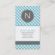 Cartão De Visita Padrão De Gingham Azul Claro Monograma