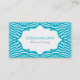 A elegante e moderna turquesa azul e branca abstrato zebra retém o padrão de impressão animal. Modelo de cartão de negócios totalmente personalizável. Se precisar de ajuda para personalizar, mudar de cor ou qualquer outra coisa para qualquer um dos meus designs, entre em contato com o designer ArtOnWear.Formatação de texto livre com ajuda ao vivo disponível por solicitação.
