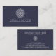 Mandala branca elegante e pequeno padrão de pontos em fundo azul escuro. Modelo de cartão de negócios personalizável de planador de casamento.