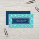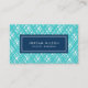 Este na moda de cartão de visita colorido apresenta um padrão de traçados de linha turquesa com um centro azul na frente e um backside azul correspondente. É ideal para designers de interiores, estilistas, planejadores de partidos, planejadores de eventos, consultores etc. Personalize-o substituindo o texto do marcador de posição. Para obter mais opções, como alterar a fonte e seu tamanho/cor ou o espaçamento entre letras, clique no botão "Personalizar". *Observe que a Marca d'água do Zazzle que aparece na visualização de zoom NÃO aparecerá no produto impresso final. © Rosewood e Citrus