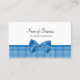 Um cartão de visita branco e azul, no estilo country, com uma fita azul-esbranquiçada presa a um arco bonito. Personalize esta design feminina adicionando seu nome e sua ocupação. Imagem impressa plana, não arco real.