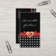 Cartão De Visita Padrão preto de bolinhas branca com arco e joia ve
