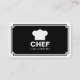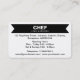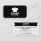Um modelo de cartão de negócios na moda projetado para um café, restaurante ou um compro de café em mente. A placa tem um painel grande, enquadrado na parte frontal, contendo o logotipo/símbolo do chapéu genérico do chef, com o nome da empresa e o tipo de negócio abaixo. O verso da placa tem um cabeçalho de estilo de fita simples com o nome da empresa e o tipo de negócio repetidos no cabeçalho. A seção inferior tem o endereço na parte superior com horários de abertura no centro, com o número de telefone abaixo e os endereços de e-mail e de site na parte inferior. Este modelo permite muito espaço para nomes mais longos fazer fácil de personalizar com seus detalhes, mas também pode ser personalizado adicionalmente.