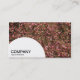 Um modelo de cartão de negócios com um painel semicírculo branco na parte inferior esquerda para o nome da sua empresa e o tipo de negócio. O painel semicírculo é colocado sobre um fundo de foto ou trabalho de arte (que também pode ser alterado). Nome e outros contatos no verso.