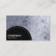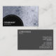 Um modelo de cartão de negócios com um painel semicircular preto decorado com uma linha pontilhada branca na parte inferior esquerda para o nome da sua empresa e o tipo de negócio. O painel semicírculo é colocado sobre um fundo de foto ou trabalho de arte (que também pode ser alterado). Nome e outros dados de contato no verso.