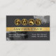 Uma cobrir de todas as cinzas com o decapante de tinta é acentuada por uma camada listrada de ouro perto do centro da placa. Aqui está o nome da empresa "HANDYMAN SERVICE" que você pode mudar. Logo acima, este é um logotipo do ícone de ferramentas manuais douradas que você pode usar. ; As ferramentas podem representar alguns dos serviços que você oferece, por exemplo, a fita de medição de brocas pode representar a remodelação doméstica, a construção, etc. Perto da base está o seu nome prestigioso, o título do cargo e os contatos do lado oposto. No verso, os detalhes da placa estão sobre à esquerda com um logotipo "telhado elétrico de serra" que você pode usar, colocado no topo. A isto segue-se o seu nome prestigiado, os seus dados de contato e a sua opção de slogan para divulgar a sua empresa. Um cartão de excelente para que o trabalhador e os empreiteiros da construção usem.