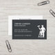 A business card for the painting and decorating industry. With a charcoal grey background on the front and a silhouette of a painter on steps holding a paint roller, easily customize the white typography with your name and contact details. The reverse of the card has a plain white background where you can list out the services that you offer.
