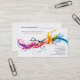 Esse cartão de visita dinâmico apresenta um design colorido e enérgico com uma ilustração do cabelo fluindo num espectro de cores vibrantes, interligado com uma tesoura profissional. A explosão das cores simboliza a criatividade, a inovação e a paixão pelo cabeleireiro. O lado direito do cartão é dedicado aos detalhes comerciais, apresentados de forma clara e organizada. O design comunica efetivamente uma sensação de talento artístico e de serviço de alta qualidade, fazer memorável e atraente visualmente.