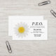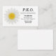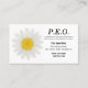 Este cartão de visita é para membros de P.E.O., uma organização que aumente o dinheiro da bolsa de estudos da faculdade para mulheres. Caracteriza uma flor do marguerite e sua informações de contacto e é perfeito distribuir aos candidatos potenciais da bolsa de estudos.