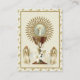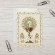 Apresentando uma bela imagem personalizada do Senhor Risen, Jesus no Eucarista com um cálice abaixo e anjos adorando em cada lado. As costas têm uma bela oração católica tradicional e um hino, "O Sacrament Most Santa".