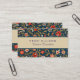 Cartão De Visita Pássaro e Flor Padrão Vermelho Azul Persa
