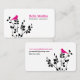 cartões de visitas legal com um bonito pássaro rosa sentado sobre uma árvore preta e silenciada com folhas. Embora únicas, essas placas são uma maneira moderna de se conectar com clientes criativos.