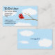 Um pássaro vermelho adorável em um galho de árvore. Céu azul e nuvens brancas lisas na frente e atrás desta cartão de visita original. Um modelo de cartão de negócios bonito, excelente para lojas da natureza, observadores de pássaros, campos, empreendedores e artesãos. Visite o Doodle World de Jenn para mais cartões de visitas caprichosos e designs de animais esquisitos.