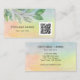 Este cartão de visita exclusivo é decorado com um verde de cor d'água em um fundo e espaço coloridos para seu Código QR. Facilmente personalizável. Use a Ferramenta Design para alterar o tamanho, o estilo ou a cor do texto. Porque nós criamos a nossa trabalho de arte, você não encontrará esta imagem exata de outros designers. Original Watercolor © Michele Davies.