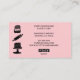 Olhos pegando modernos, brancos, cor-de-rosa poeirento e panificação preta, estilo cartão de visita, com utensílios e ingredientes de cozinha elegantes e ilustrados, com pequenos corações, e fundo rosa. Redes sociais nas costas.