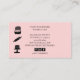 Olhos pegando estilo cartão de visita de panificação moderno, branco, cor-de-rosa e preto, com utensílios e ingredientes elegantes e ilustrados de cozinha cozinheira, com poucos corações, e fundo rosa. Redes sociais nas costas.
