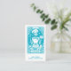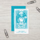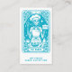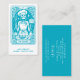 Um único padeiro com tema "Tarot", cartão de visita de pastelaria com um esqueleto com bolo e uísque. Um estilo único com um padeiro esqueleto no chapéu de chef. Azul-turquesa em branco.