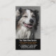 Este cartão de visita de travamento do animal de estimação do olho caracteriza um fim bonito acima da fotografia de um cão de pastor australiano do tri puro-sangue preto. Senta-se com sua cabeça inclinada leve com uma expressão curiosa em sua cara. Coloração bonita, com uma veste branca grossa, uma chama larga e umas marcações marrons ricas da cara. Ambos os lados são inteiramente customizáveis com sua própria informação profissional ou pessoal. A grande escolha também para groomers do cão, instrutores, agilidade bate, reunindo os eventos etc.