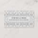 Um cartão de visita residencial e profissional de pavimentos, com um padrão de chão ou azulejo de parede, em forma de diamante geométrico, de cor branca.