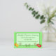 É perfeito este cartão com primaveras de dll, pimentões doces e tomate em campo verde que inclui as áreas de informação. As áreas de texto são enquadradas em uma simples borda verde escura com um fundo verde muito claro. Dois estilos de fonte distintos são usados para transmitir sua mensagem em uma cor verde-escura.