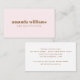 Cor-de-rosa pálido ou quaisquer cartões de visitas ou cartões de visitas pessoais com o seu nome e título/nome comercial na frente. Informações de contato personalizáveis no verso. A placa tem uma borda branca fina e sutil na frente.