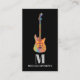 Design de guitarra de guarda colorida e dourada sobre fundo preto com nome de monograma personalizado. Adicione seus próprios detalhes usando o modelo para criar um cartão de visita profissional. O design perfeito para guitarristas, músicos e professores de música. Arte original clássica simples e tipografia da artista Catherine Sweetman