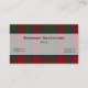 cartão de visita de xadrez na moda feito no padrão tradicional de tartan MacIntosh vermelho, azul, verde clã. A frente da placa tem uma banda branca semitransparente de borda preta, no meio da placa, com texto preto personalizado. A parte traseira da placa é feita em branco, com uma faixa de xadrez na parte inferior, e texto preto na parte branca. Personalize todo o texto para atender às suas necessidades. Cartão de visita bonito e profissional.