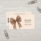 Um fundo cor de pêssego, decorado com um arco impresso no leopardo. Adicione seu nome e os detalhes. Adicione o seu Web lin/url ao código QR. Ícones do Facebook e Instagram. Pronto para elevar a sua imagem profissional? Personalize seus Cartões de visitas hoje e torne cada interação memorável!