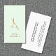 Elegante modelo de cartão de negócios totalmente personalizável com ícone de tesoura dourada FAUX e fundo verde pastel claro Perfeito para cabeleireiros, salões de cabelo. Design minimalista e chic.