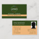 SEU FAVORITO - Faça uma impressão duradoura com este elegante e simples design verde-florestal e cor de pêssego com logotipo e foto (funcionários). Personalize facilmente este cartão de visita para a sua marca. ♡ SEU FAVORITO - Designer:-) suprimentos de negócios modernos e profissionais. ♡ muito prazer com este ponto. ♡ www.zazzle.com/store/your_favorite ♡ www.zazzle.com/store/favorite_markeplies ♡