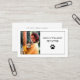 Um animal de estimação moderno minimalista sentado com fotos personalizadas e um script preto personalizado cartão de visita com design de impressão de pata.