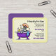 Desenho manual original e design de cartão de visita de animal de estimação por Andie of Off-Leash Art apresentando um Schnauzer tomando banho de bolha. Esquema de captura de olhos em amarelo elogioso + roxo para martelos e espas de estimação. Personalizável.