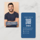 Clean and professional photo contact design featuring a modern blue layout and scannable QR code for instant connection. This customizable design includes space for a photo, name, social icons and contact details, making it ideal for professionals, consultants, realtors and small business owners. A sleek and trustworthy way to share your information and elevate your branding.
